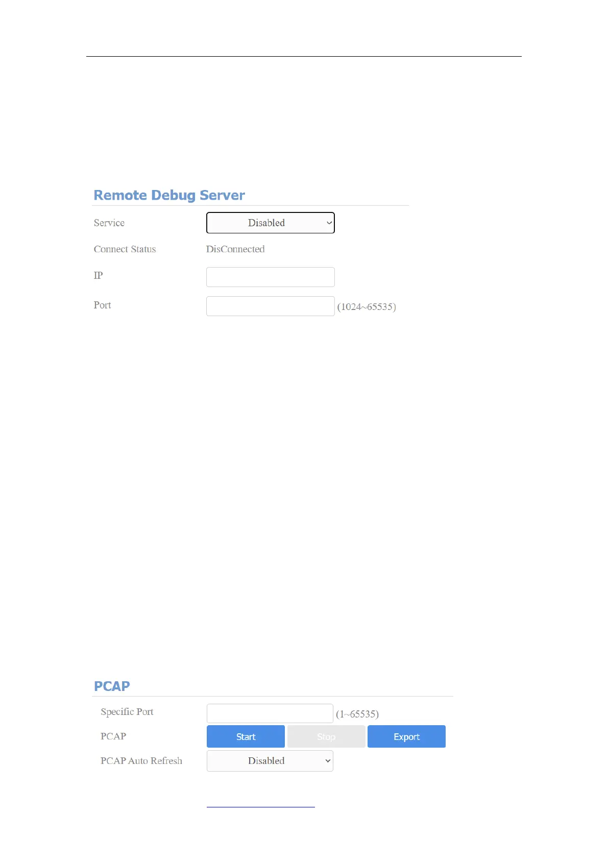 the PCAP on the device web Upgrade > Advanced > PCAP interface properly