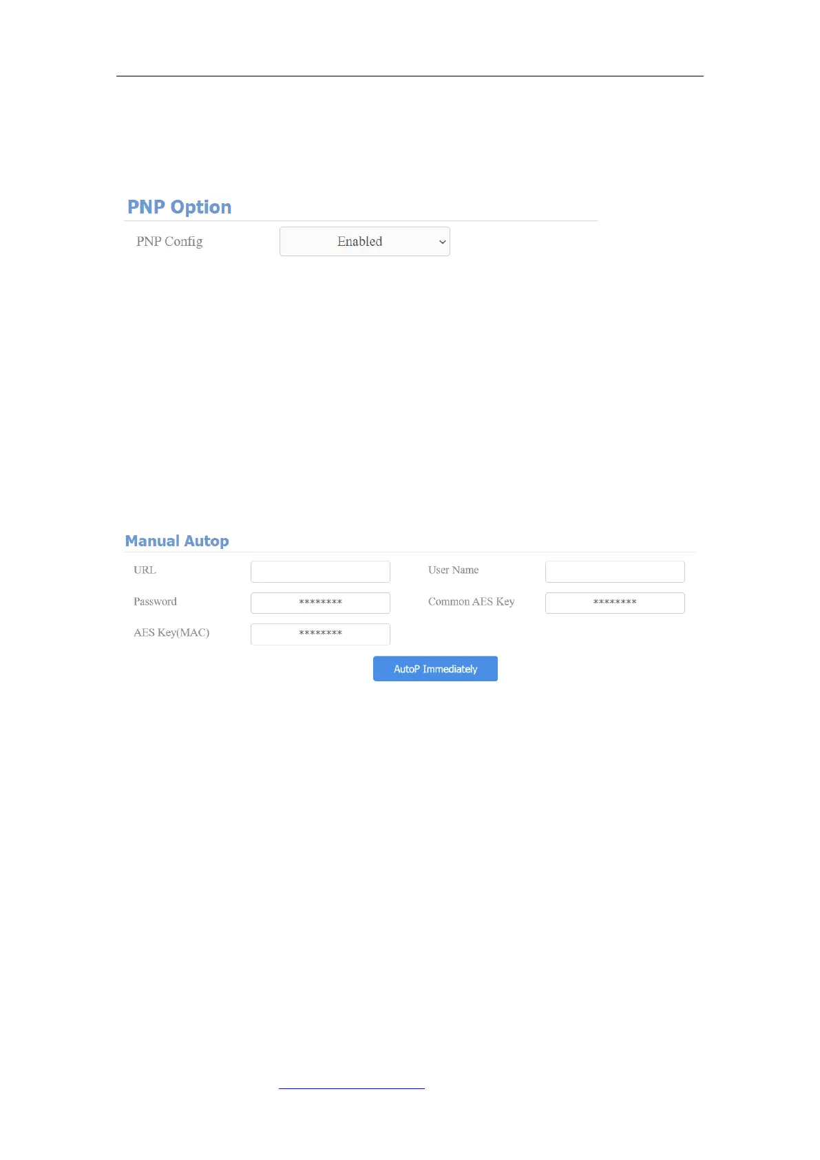 configuration on web Upgrade > Advanced > PNP Option interface.