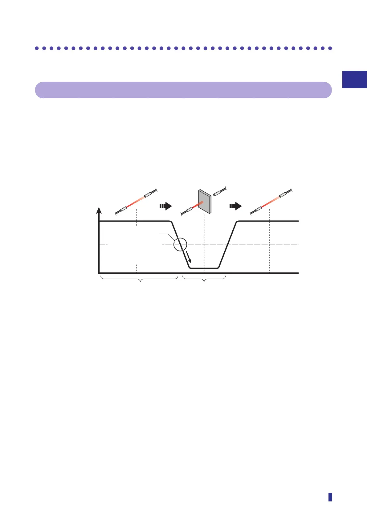 When the object blocks the light beam, the received light amount decreases. This level dropping