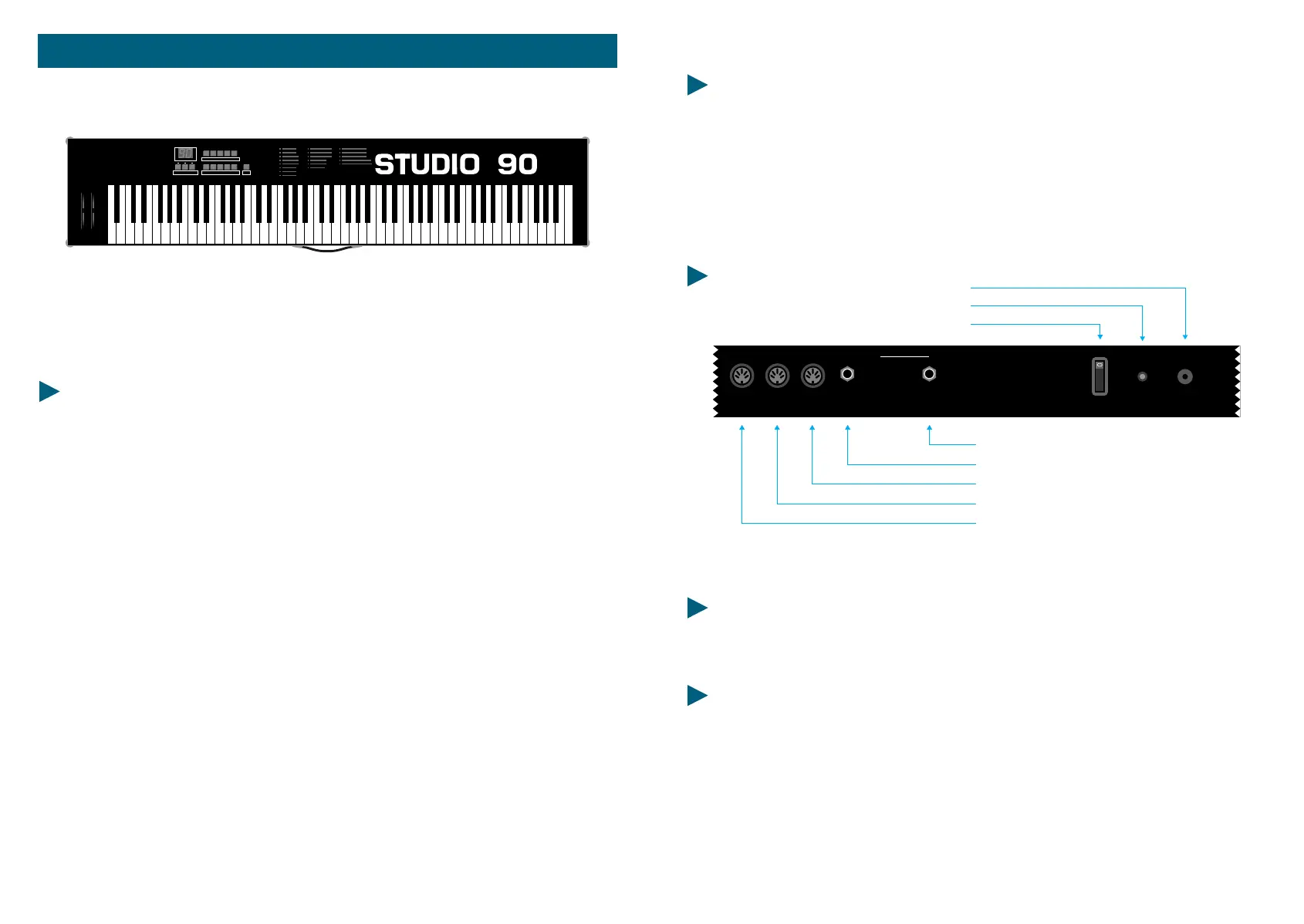 Le uscite MIDI sono tre per la STUDIO 90 Plus. Queste sono collegate in parallelo, così