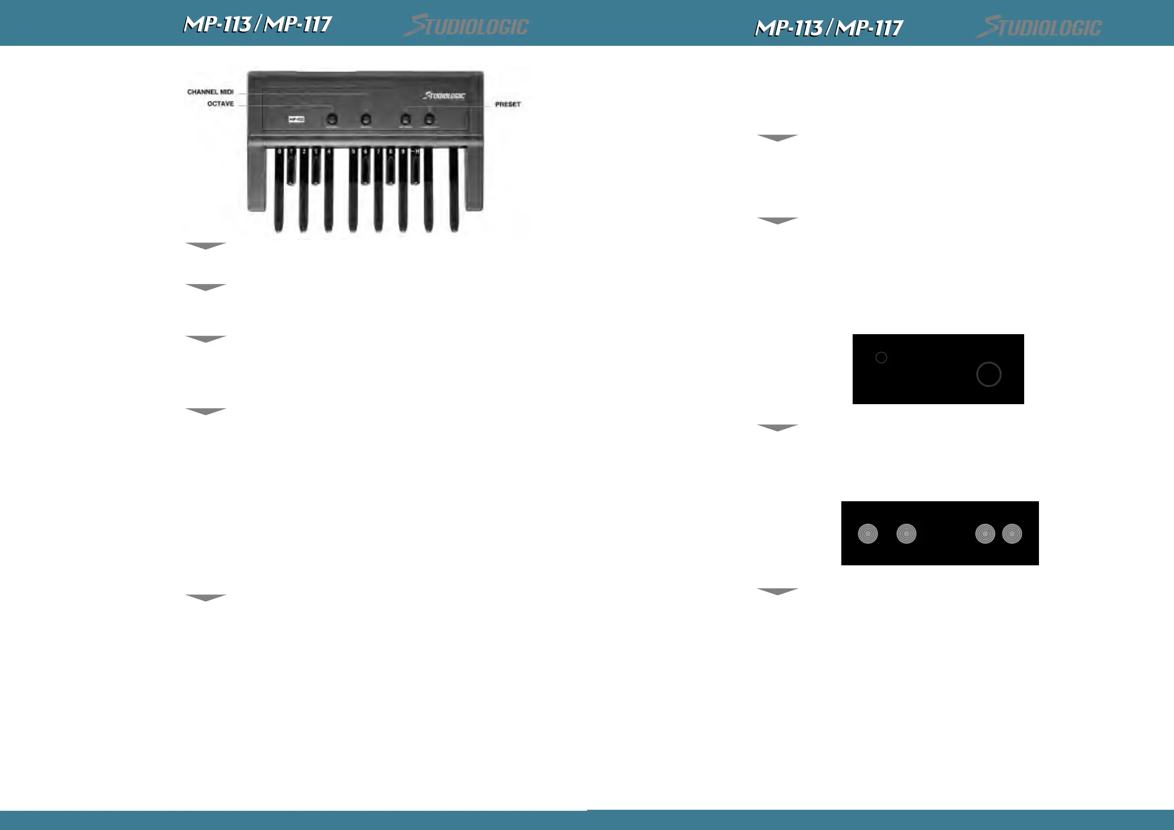 Le pedalier MP-113/MP-117 se placera, des la mise en route, sur la chaine MIDI n°1.