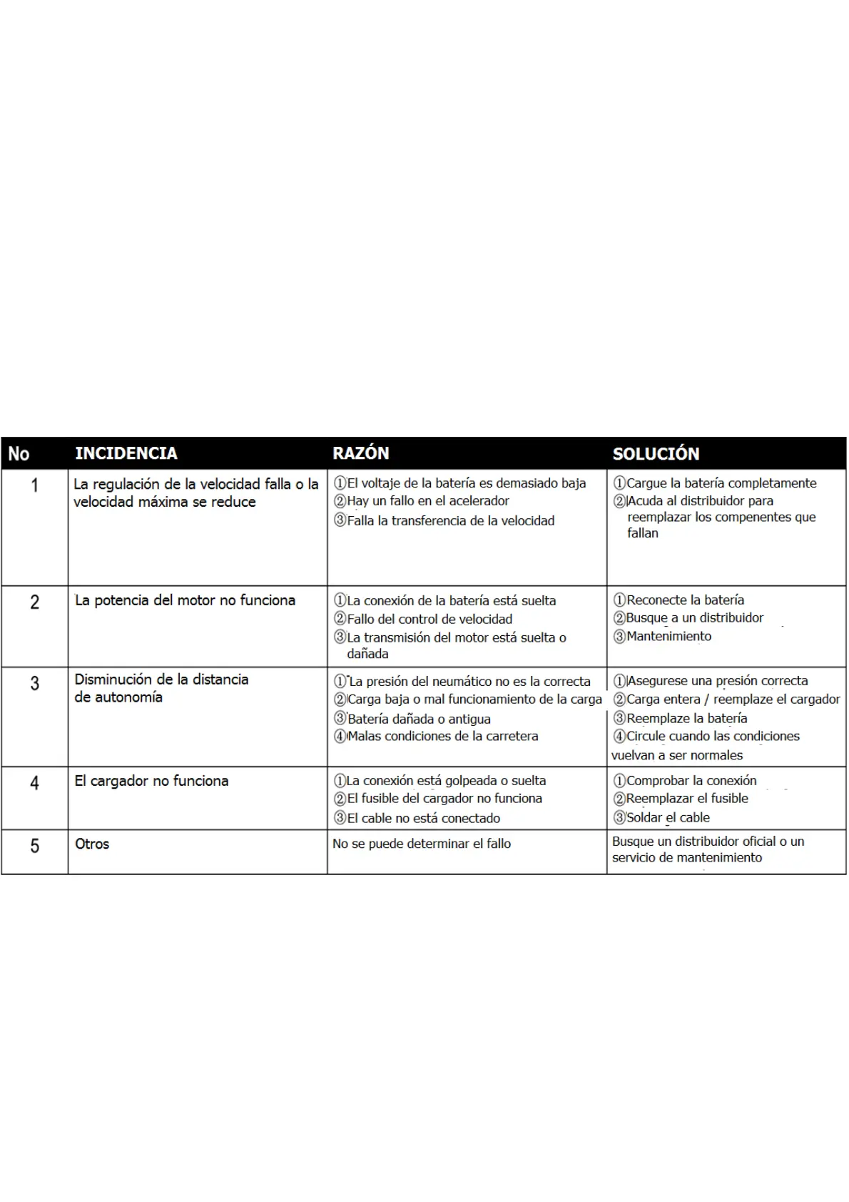 ⑦ Los ejes delanteros y traseros están sueltos.