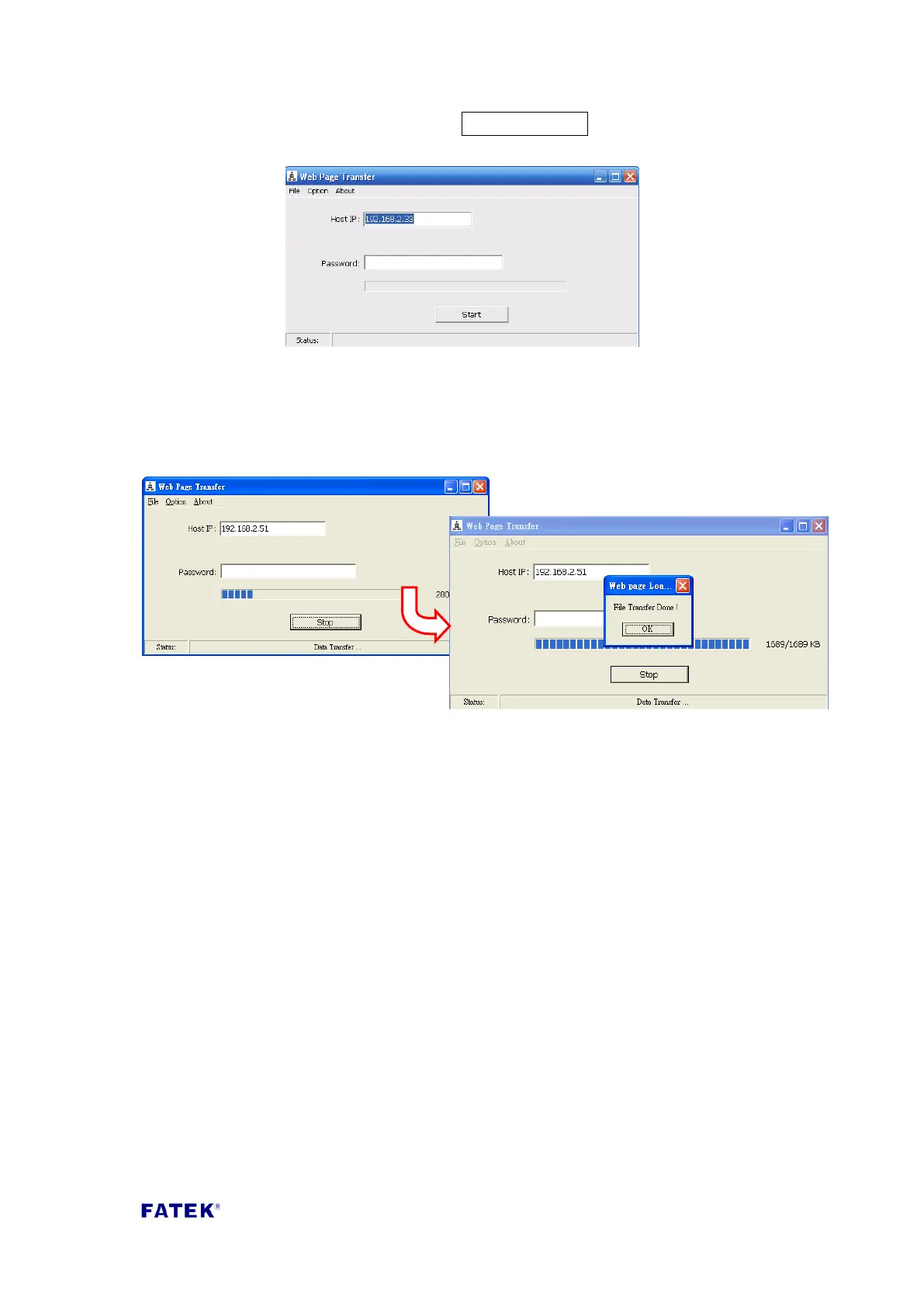 message window “File Transfer Done” will appear, indicating that the file transfer is