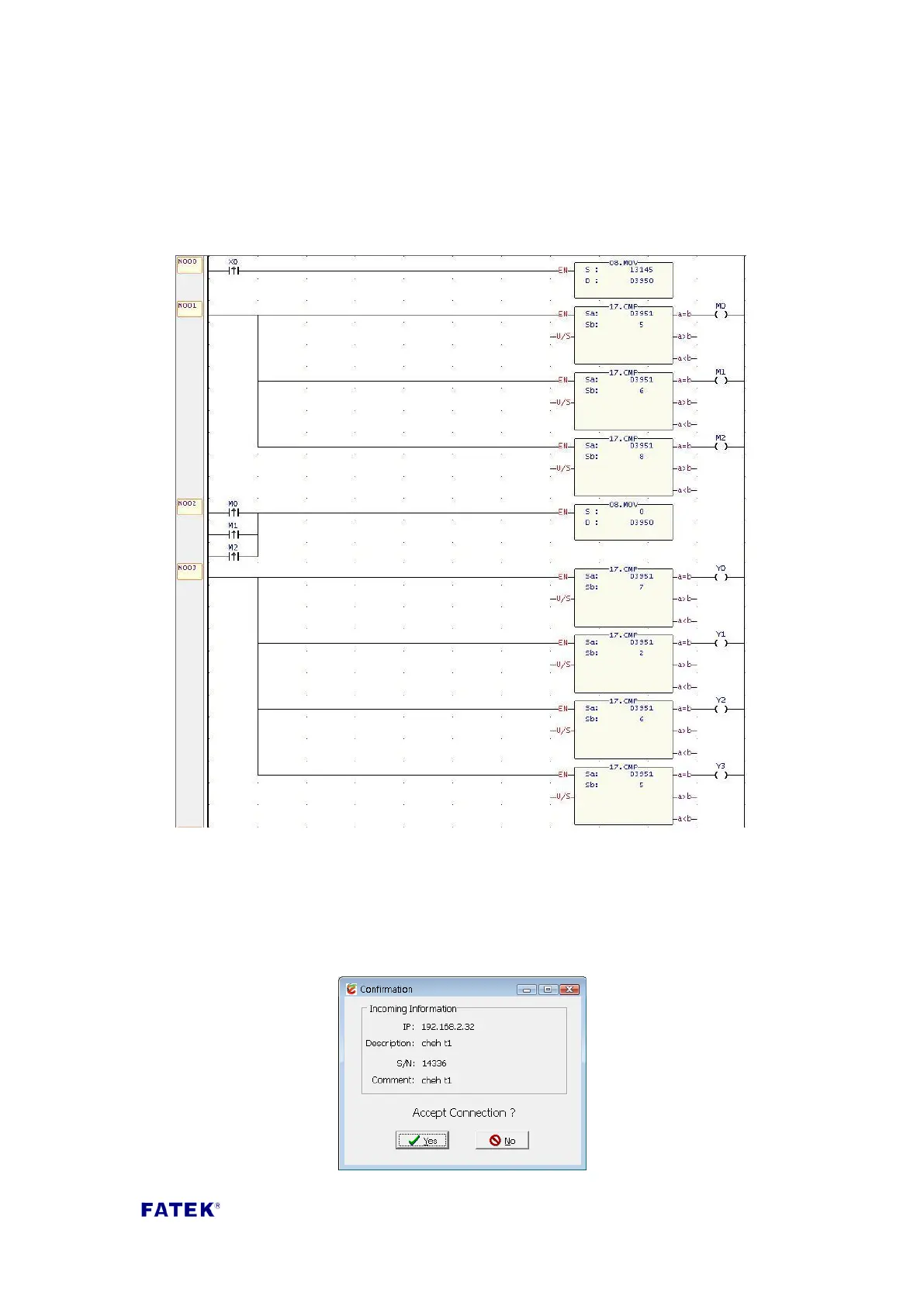 be ON. When connection failed, Y2 or Y3 will be ON. When connection is terminated,