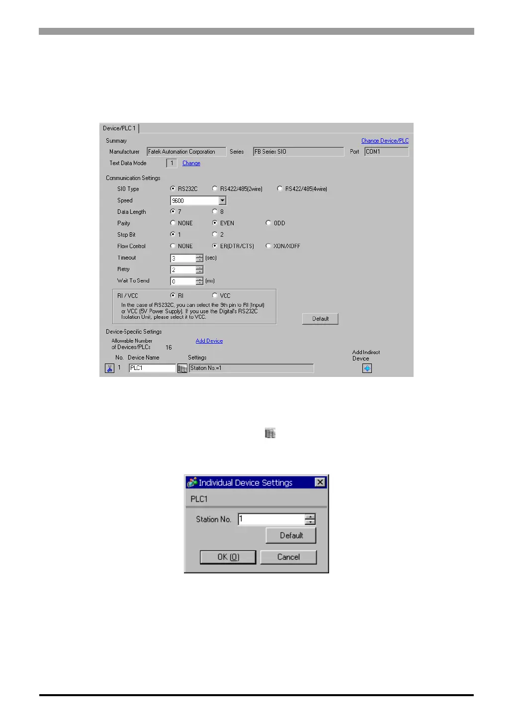 To display the [Individual Device Settings] dialog box, from [Device-Specific Settings] in the [Device/PLC]