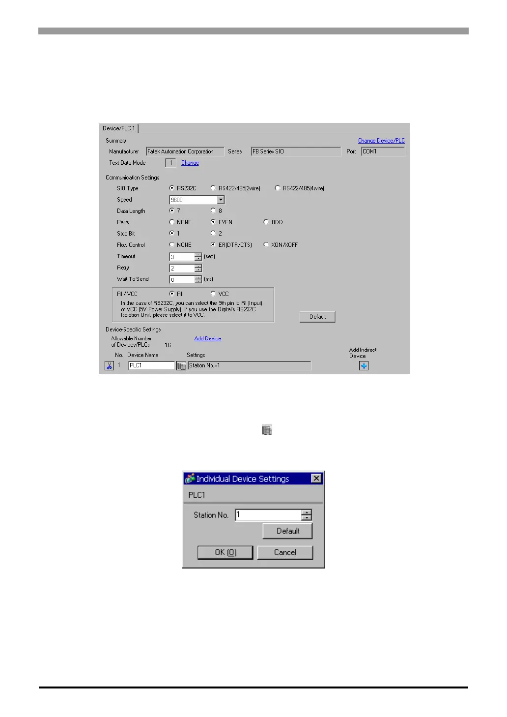 To display the [Individual Device Settings] dialog box, from [Device-Specific Settings] in the [Device/PLC]