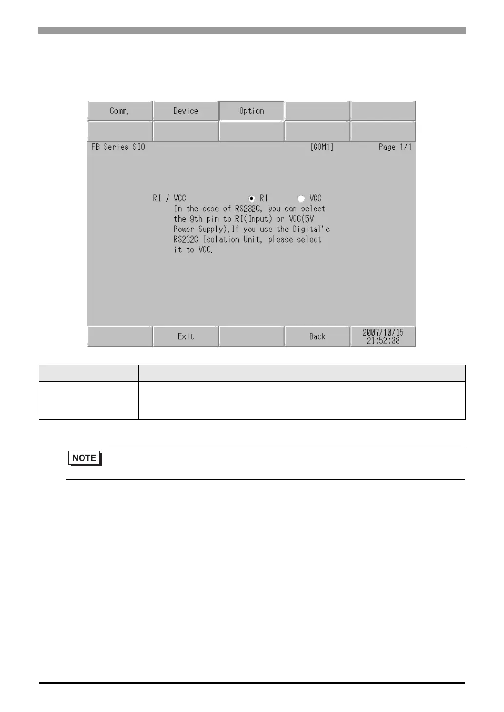 You can switch between RI/VCC of the 9th pin when you select RS232C for the SIO type.
