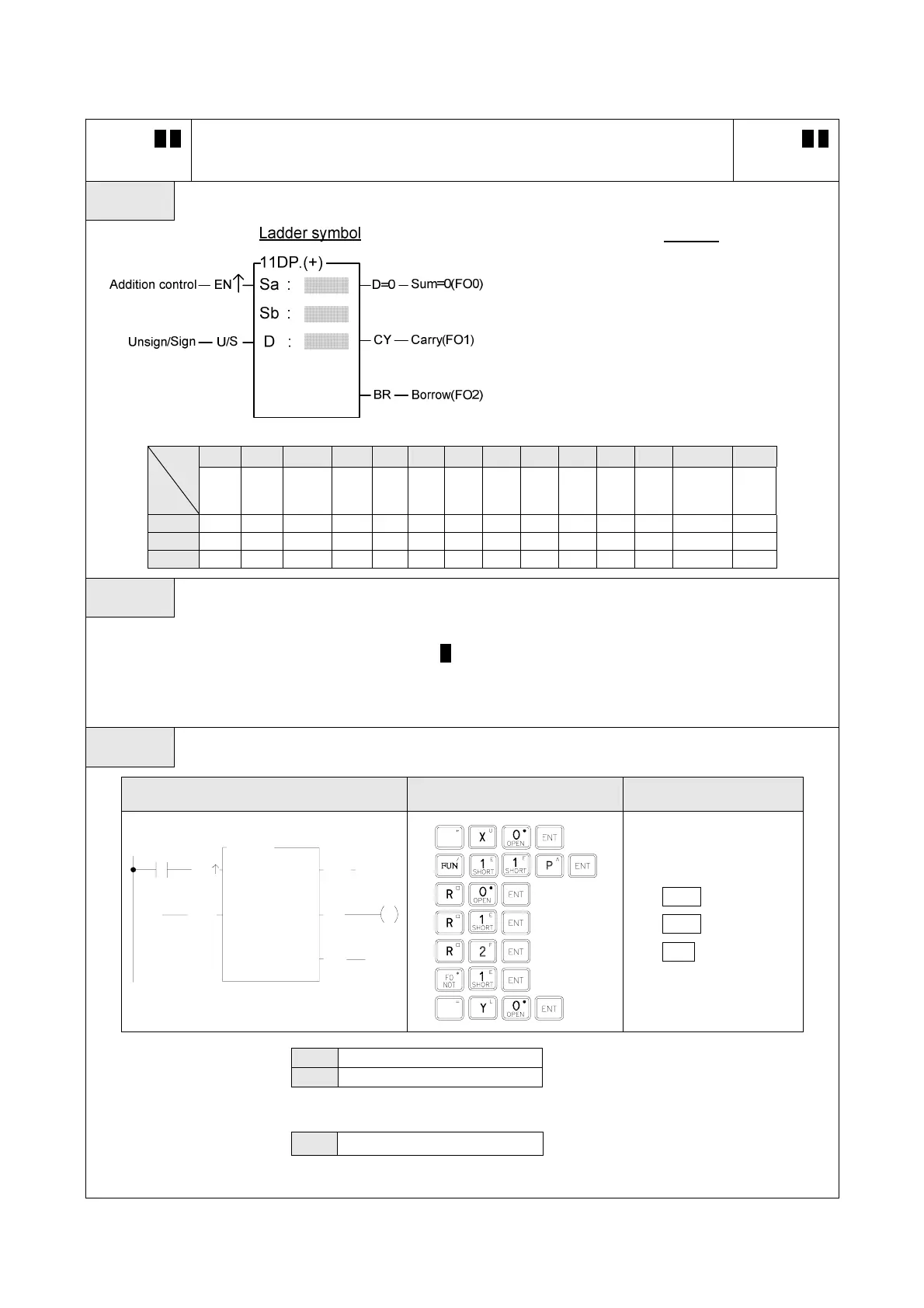 ● Performs the addition of the data specified at Sa and Sb and writes the results to a specified register D
