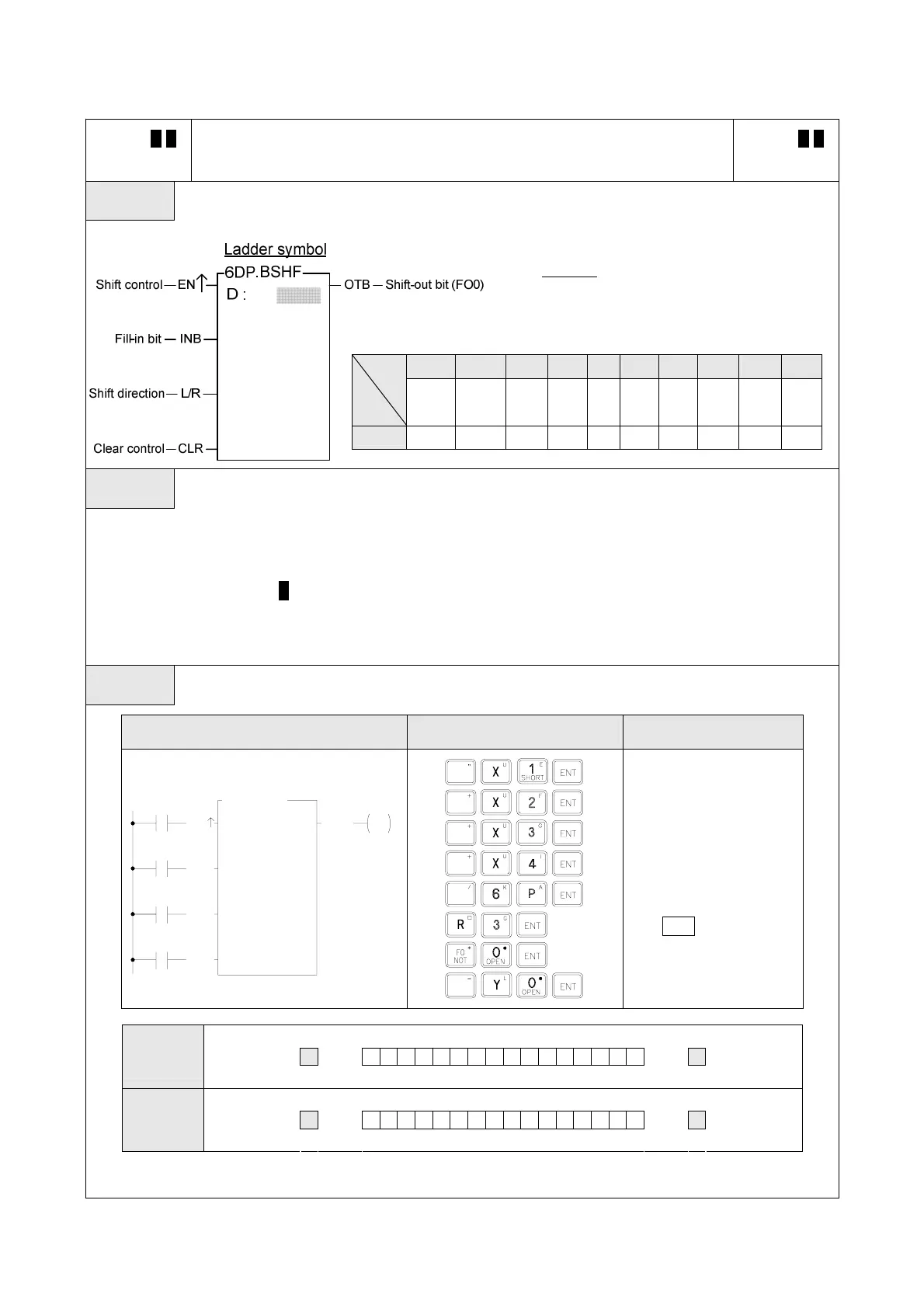 shift operation will be filled in by the input status of fill-in bit "INB".