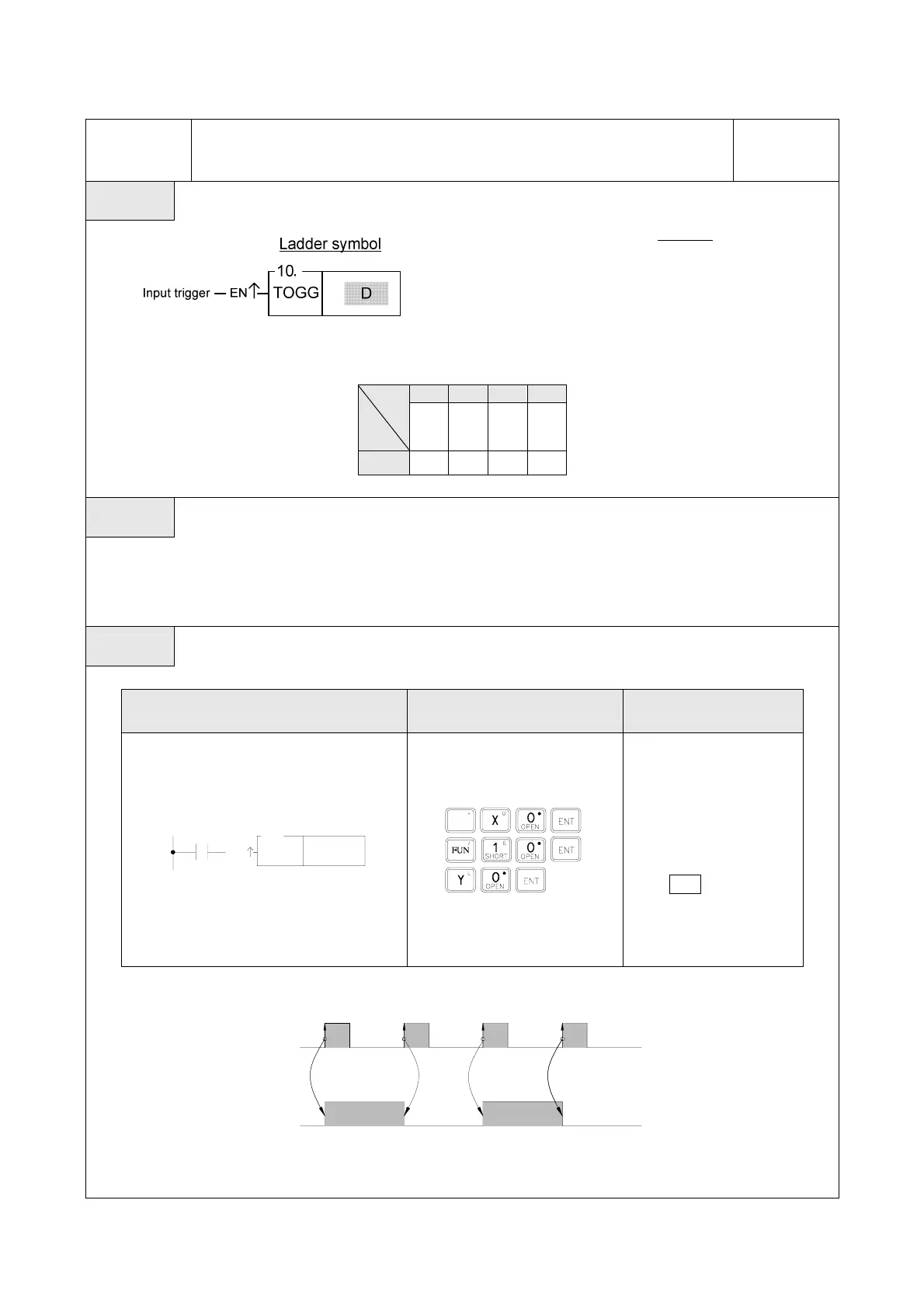 The coil D changes its status (from 1 to 0 and from 0 to 1) each time the input "TG" is triggered from 0 to