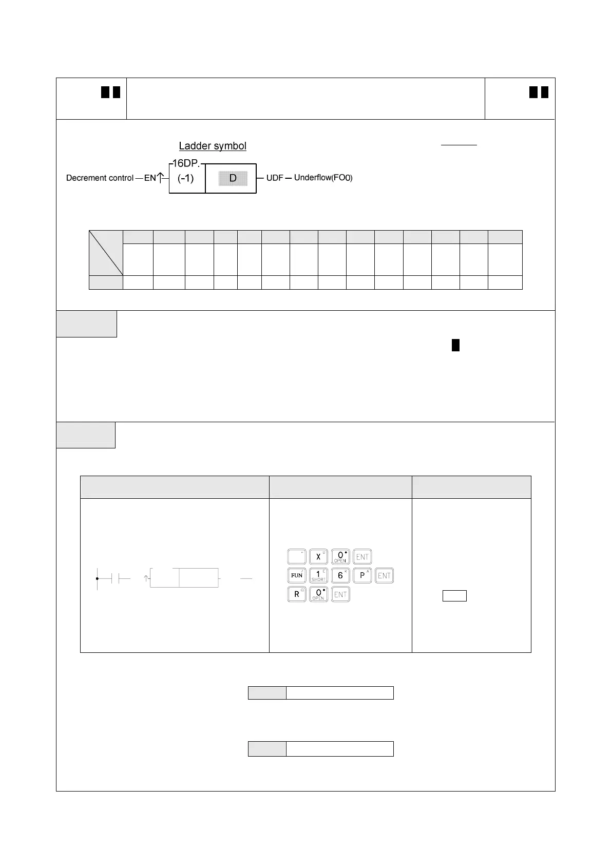 ● Subtracts 1 from the register D when the decrement control input "EN" =1 or "EN↑" ( P instruction) from 0