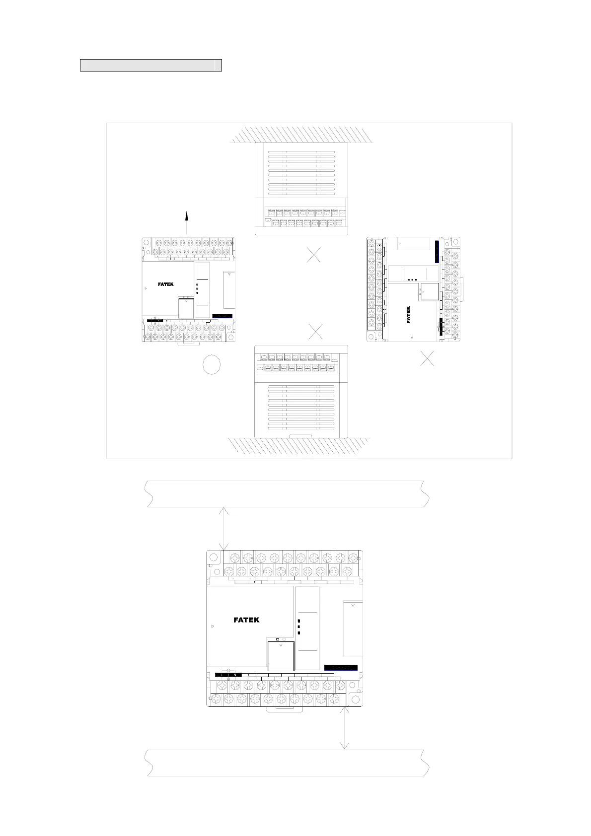 The heat in FBS-PLC is ventilated via air circulation. There should reserve more than 20mm space, both below and