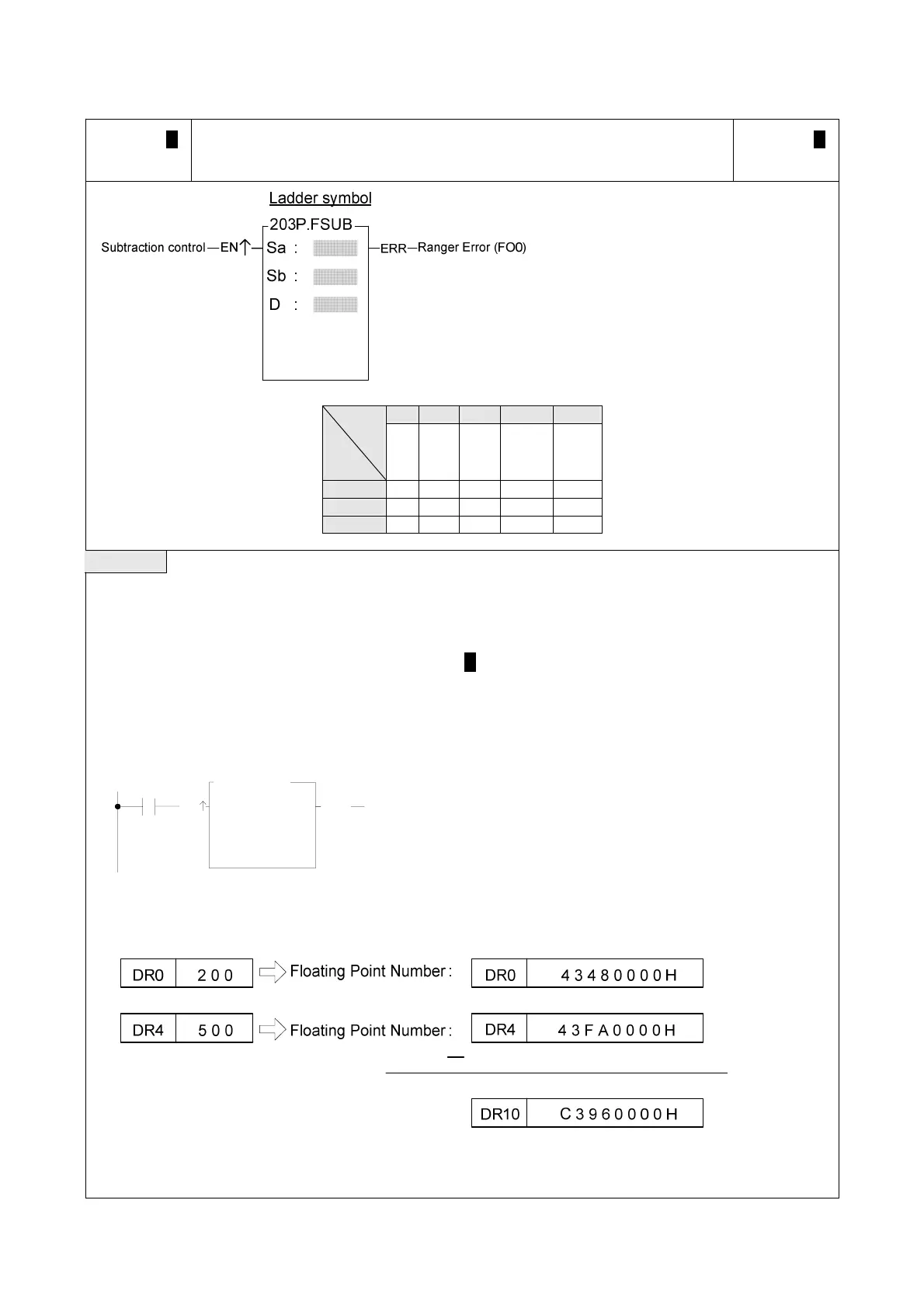 when the subtract control input "EN" =1 or "EN↑" ( P instruction) from 0 to 1. If the result exceed the range