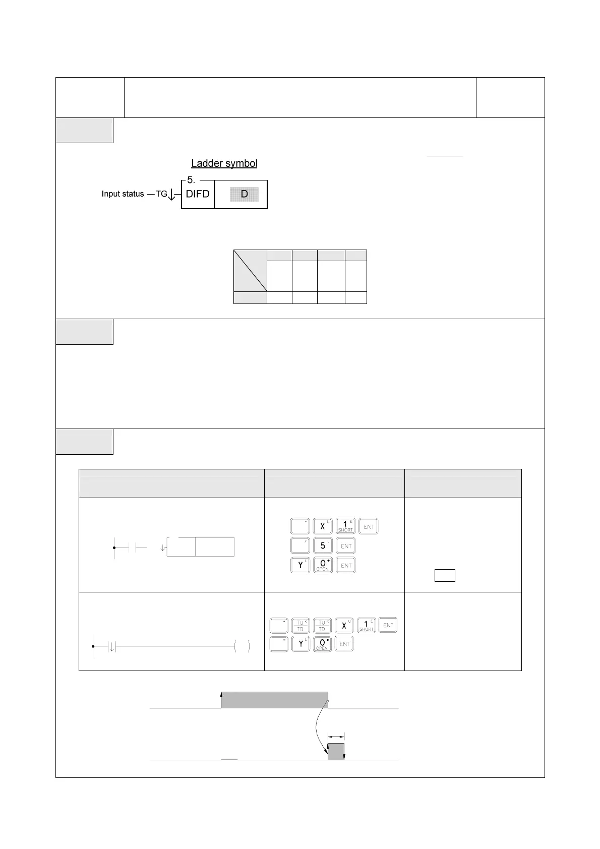 ● The DIFD instruction is used to output the down differentiation of a node status (status input to "TG↓") and