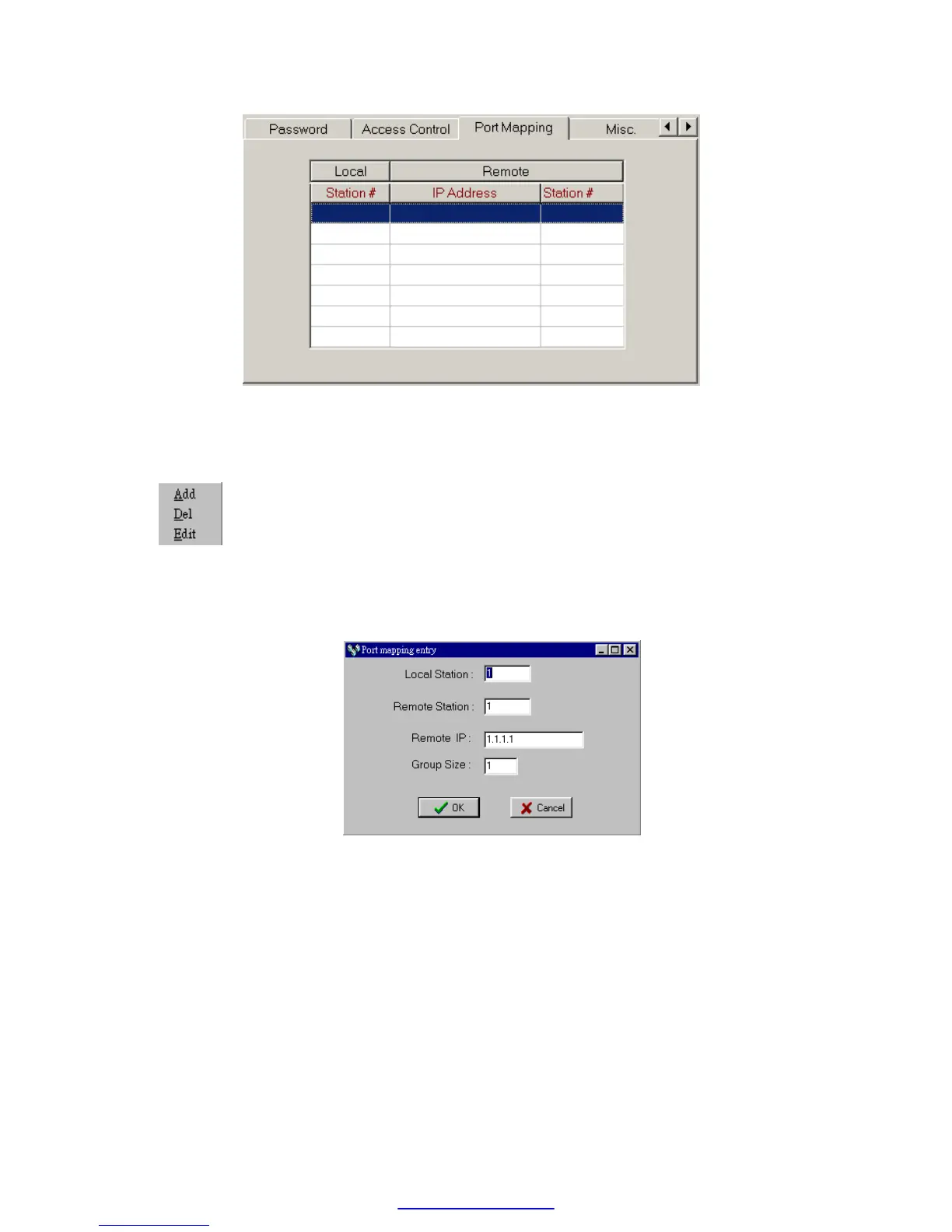 Click ’Add’ to add one station mapping data. Click ’Del’ to delete a station