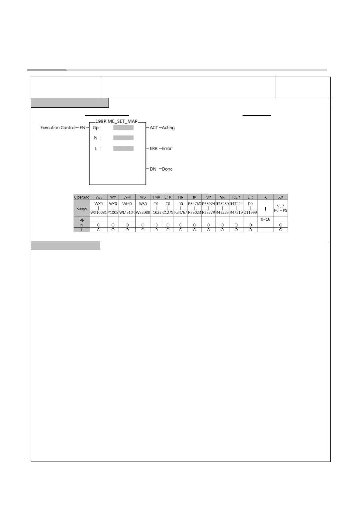 ⚫ When the execution control [EN] changes from 0→1, Fun198 will map (write) the PLC register