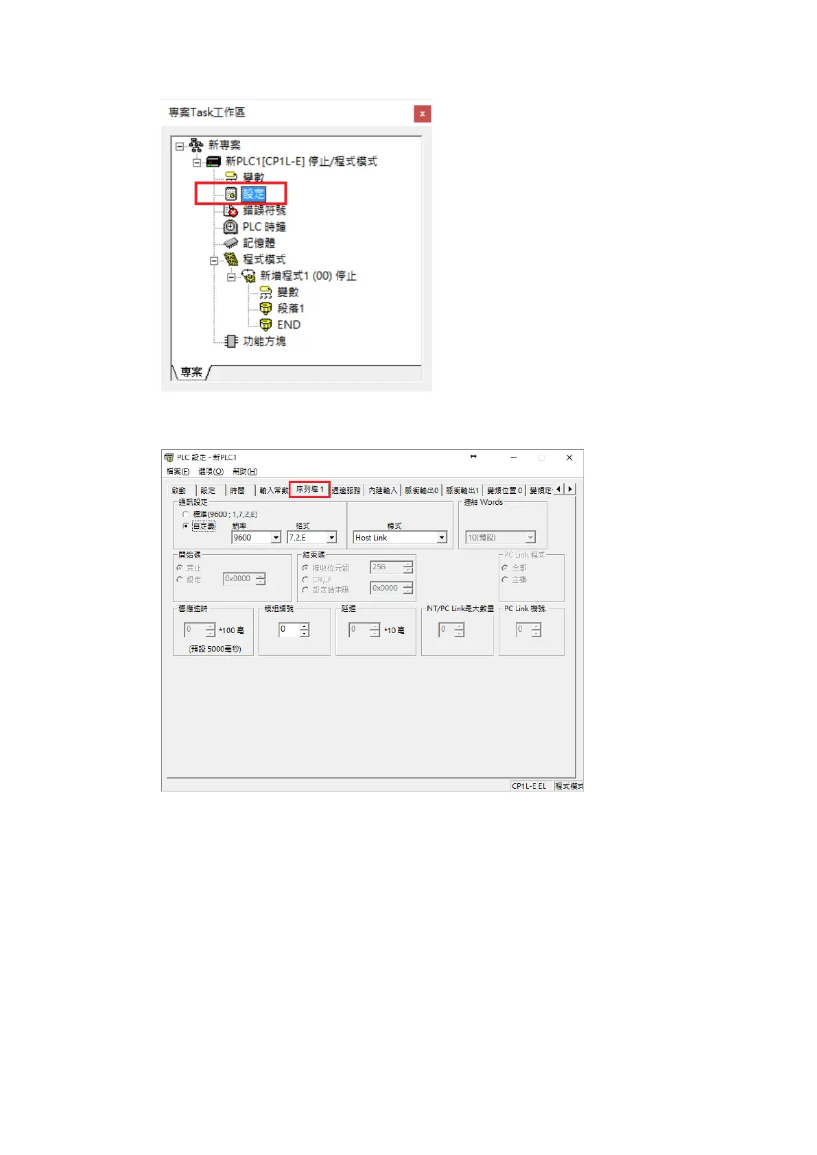 Navigate to 序列埠 1 tab and configure it to the settings detailed below.