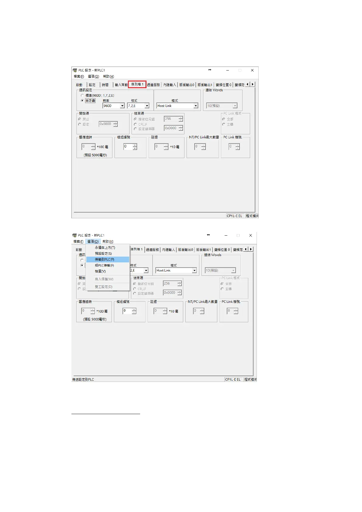 Navigate to 序列埠 1 tab and configure it to the settings detailed below.