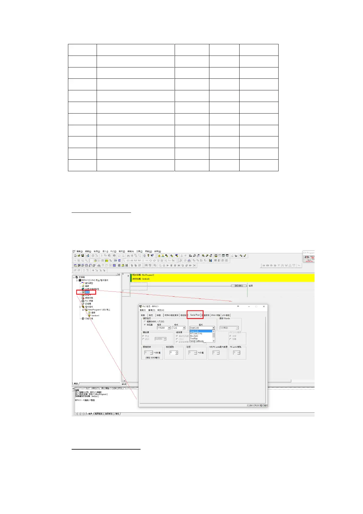 Use CX-Programmer to configure the port of the PLC.