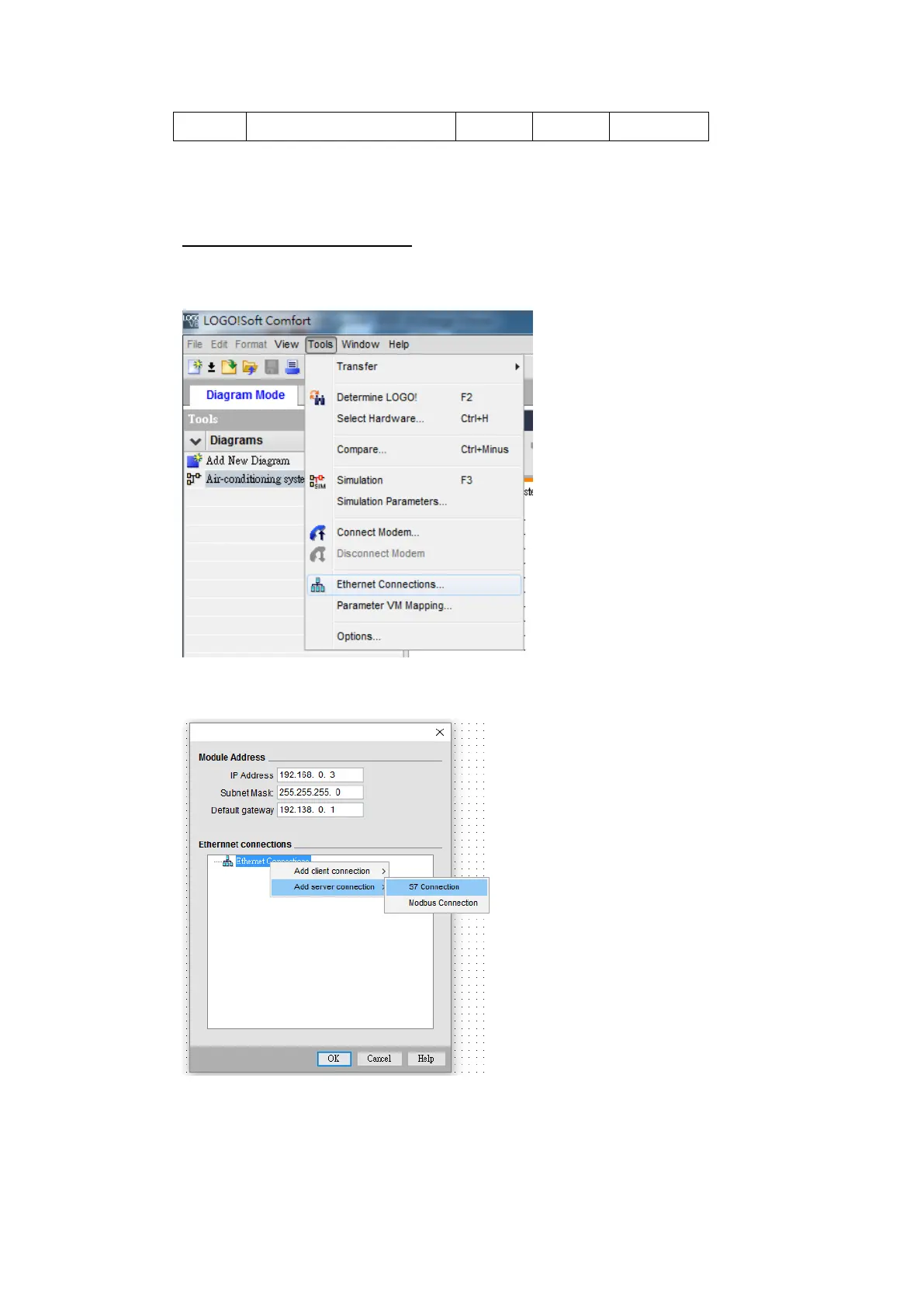 Use the application LOGO!Soft Comfort V8.1 to configure the IP address of the PLC.