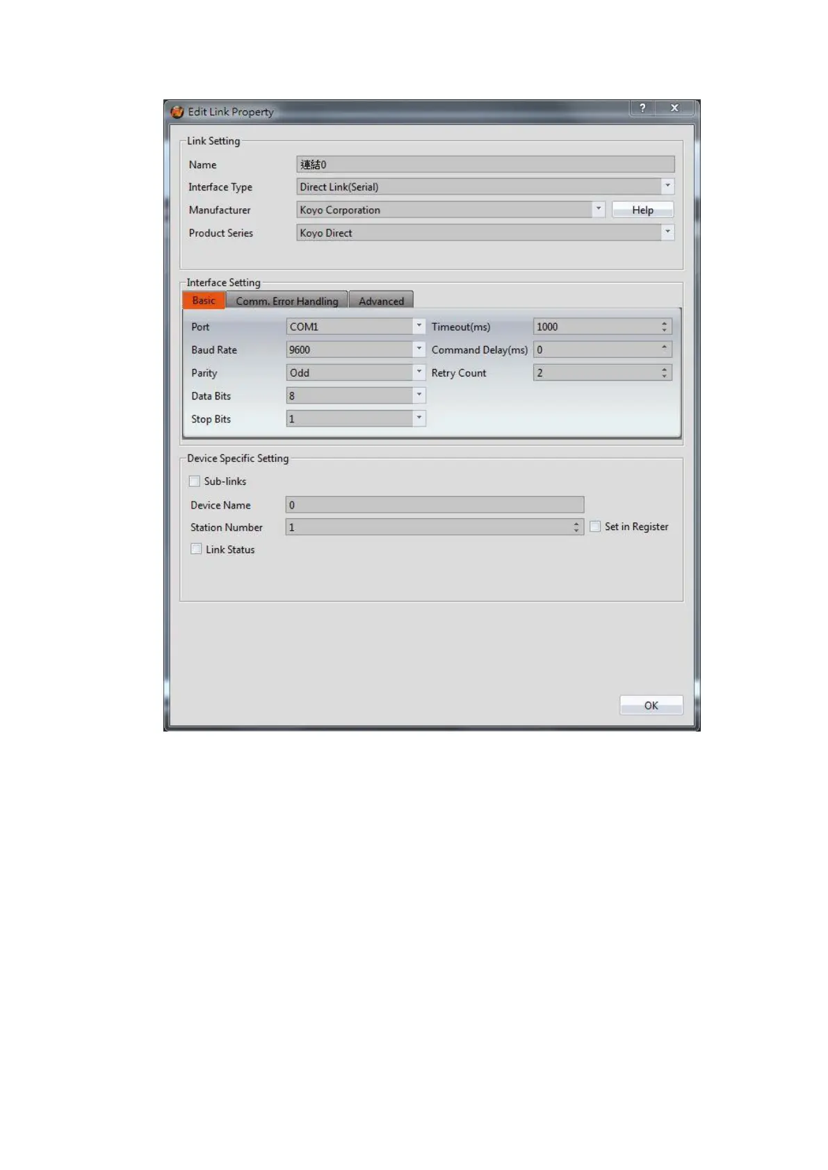 Within the Link configuration window in FvDesigner: