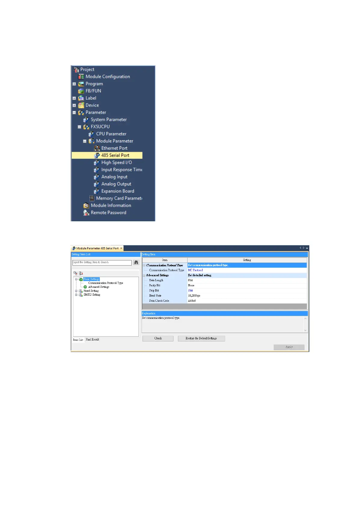 Under Basic Settings, change Communication Protocol Type to MC Protocol.