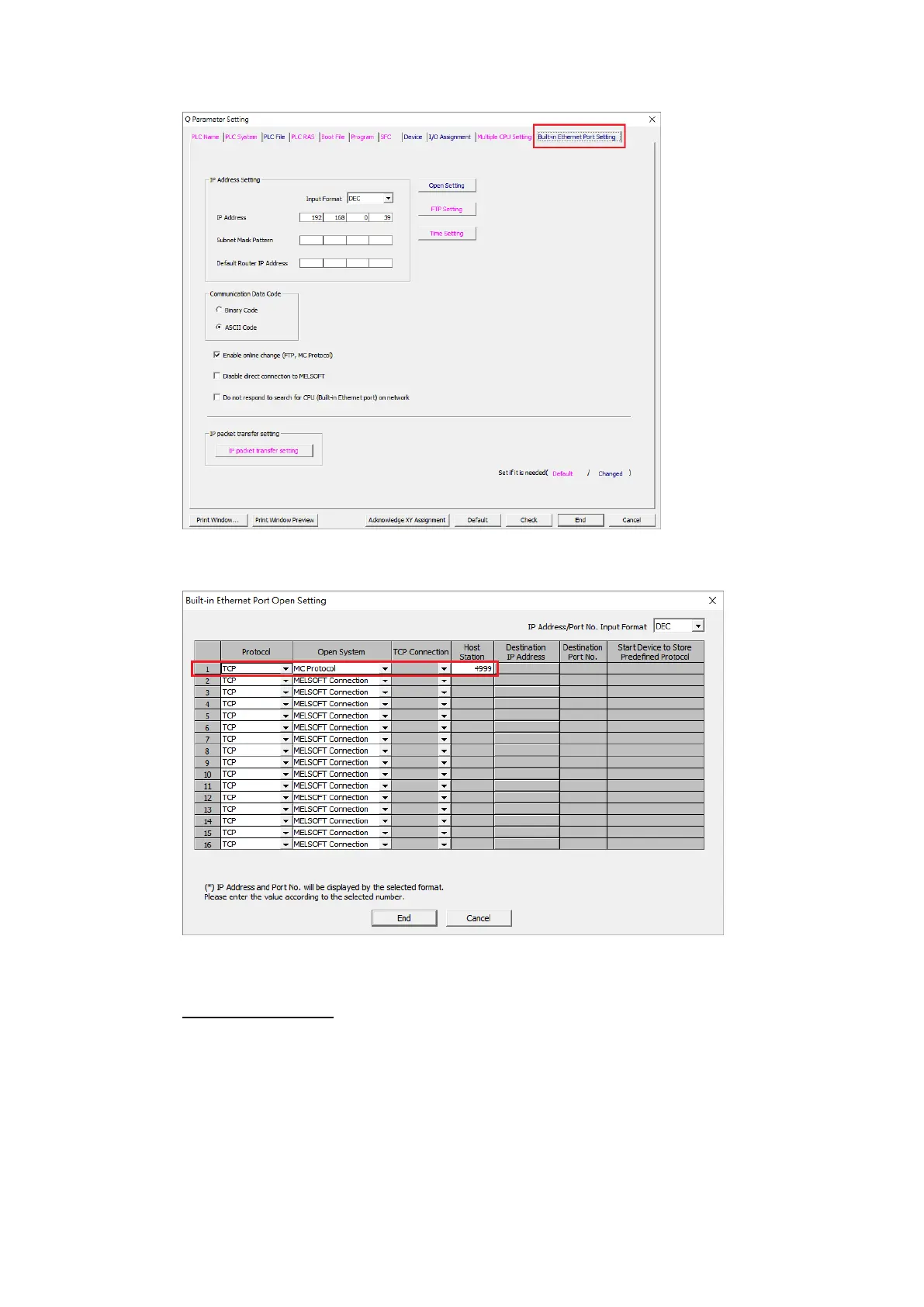 Click Open Setting and set the entire Open System column to MC Protocol. For the