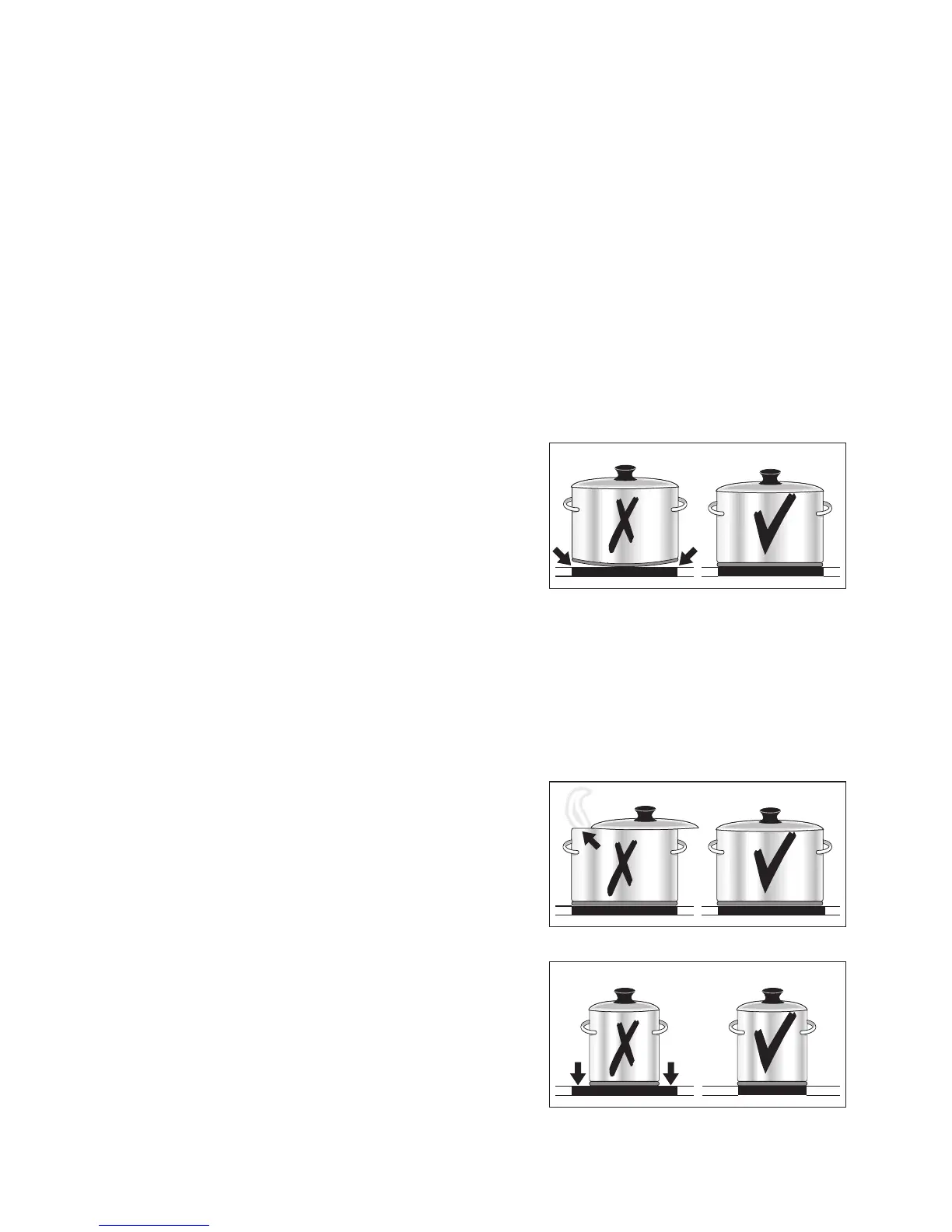 • Do not use cast iron pans or pans with a rough, burred or damaged base.