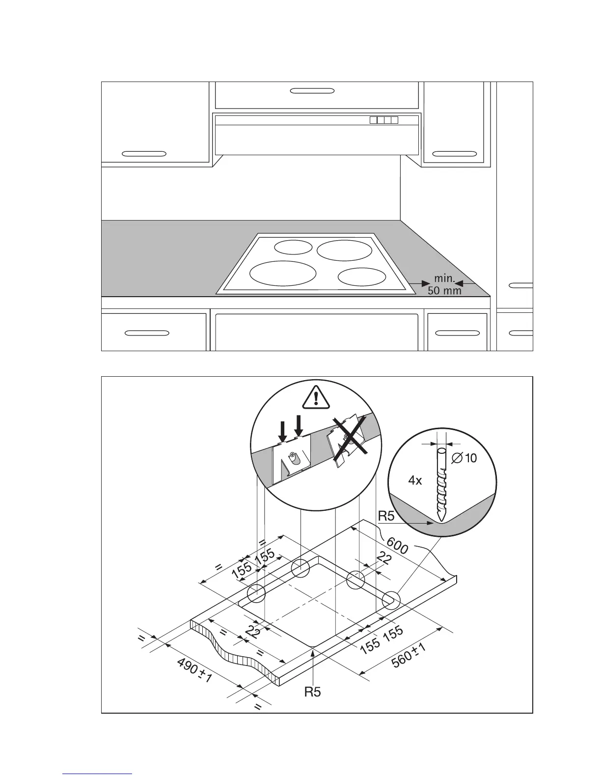 FAURE FCE620BK - Assembly and Mounting; Hob Mounting and Installation