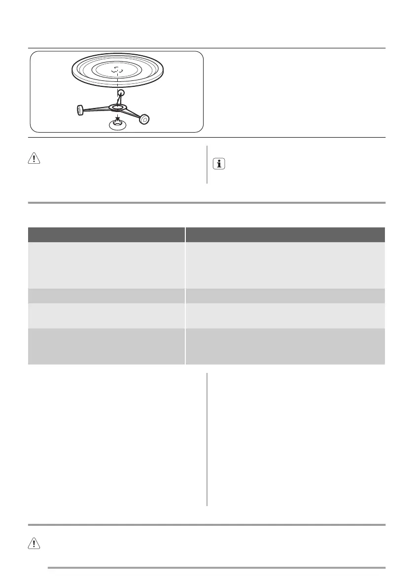 Caution! Do not cook food without the turntable