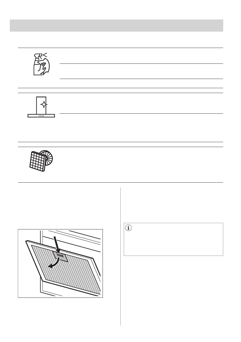 A készüléket és a zsírszűrőket havonta tisztítsa. A készülék belsejét és a zsírszűrőket