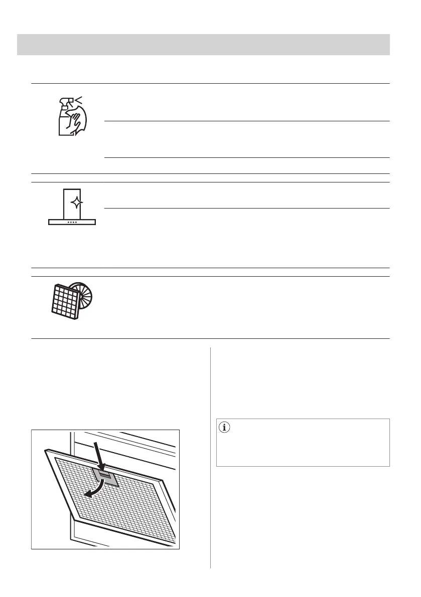 Každý mesiac vyčistite spotrebič a tukové filtre. Opatrne vyčistite vnútro a tukové filtre