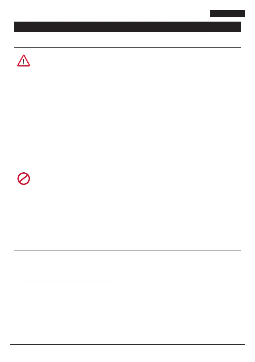• DO NOT make any modications and/or attempt to repair the product. All repairs must be