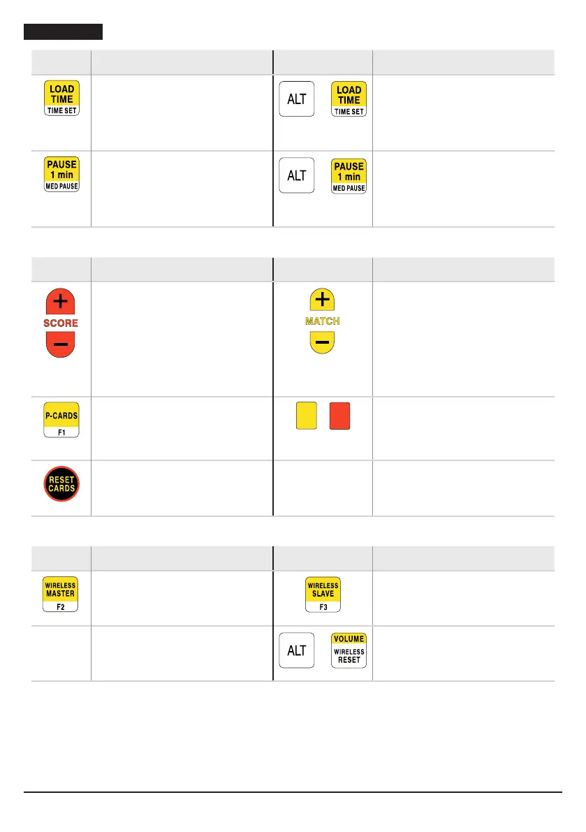Tasten für Punktzähler, Strafkarten, Straftreffer