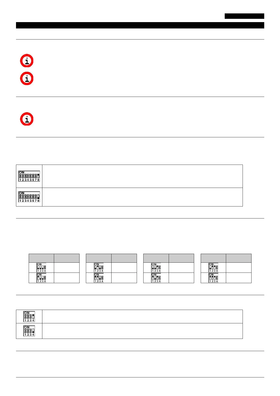 Set the DIP-Switches according to the tables below to obtain the delay time desired.
