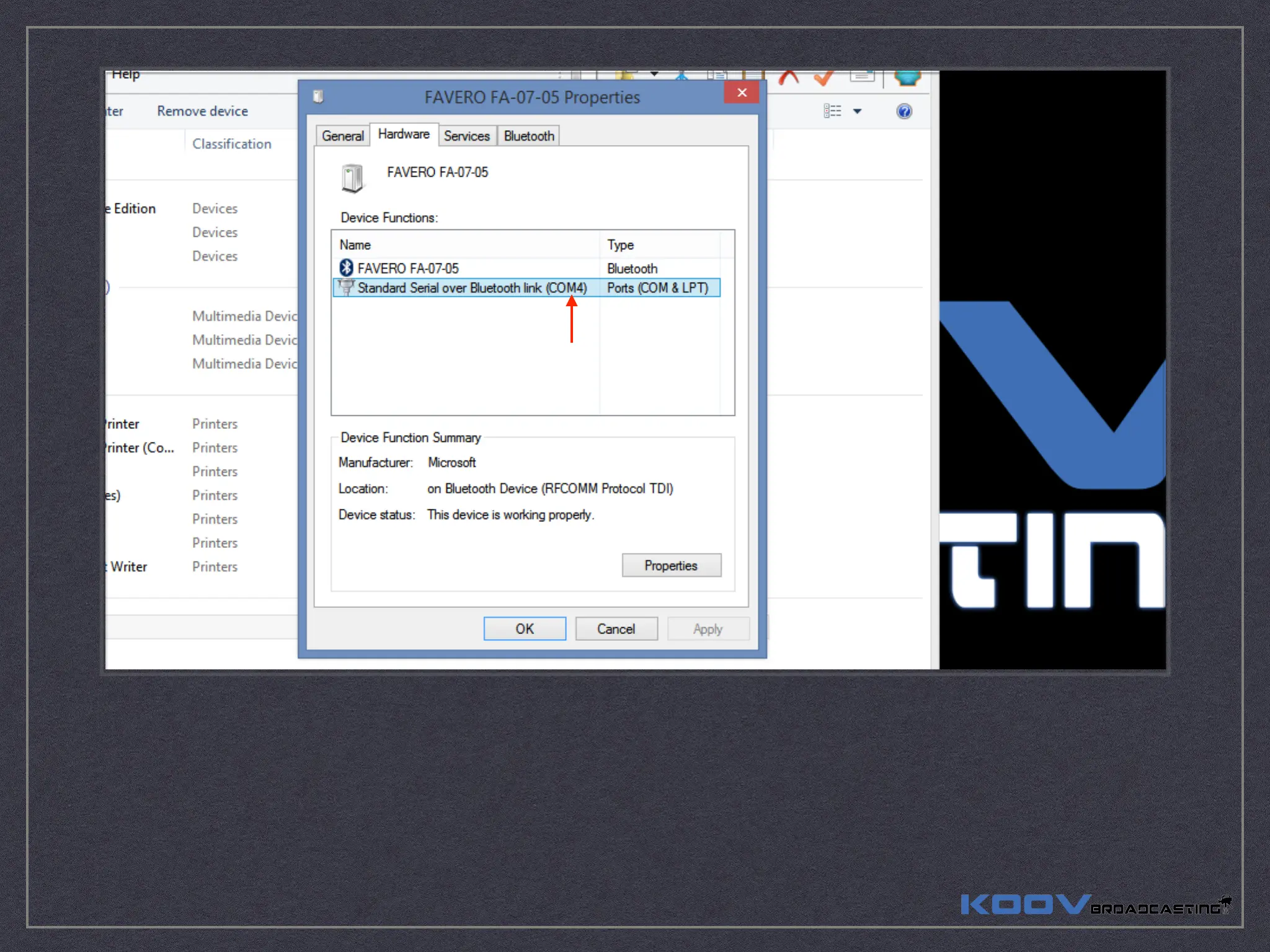Inside “Hardware” page, you will see the COM port number.