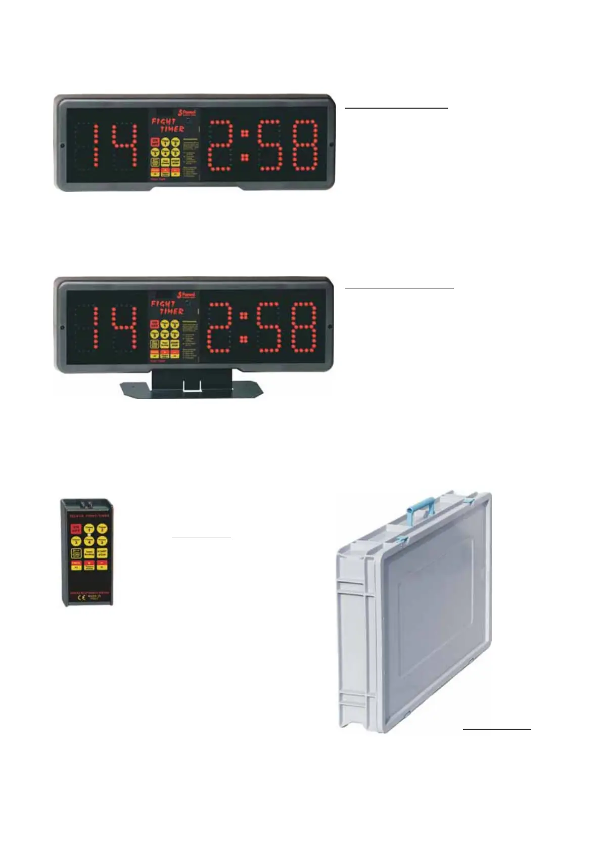 Favero Fight Timer - Product Variants and Accessories; Art.150 FIGHT TIMER - Wall Version; Art.151 FIGHT TIMER;T - Table Version; Optional Accessories