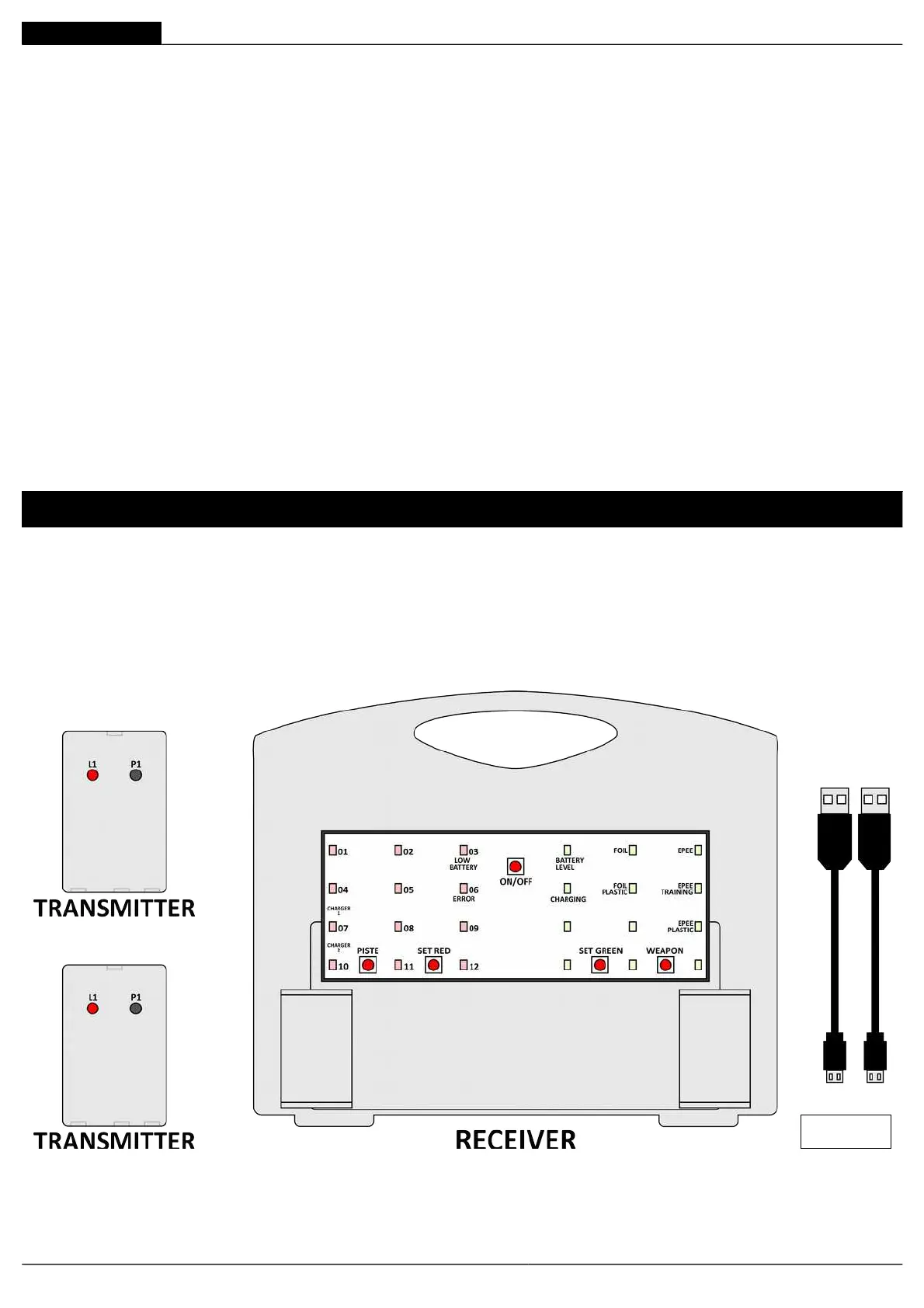 • one RECEIVER: this is the receiving apparatus that signals hits by way of LEDs.