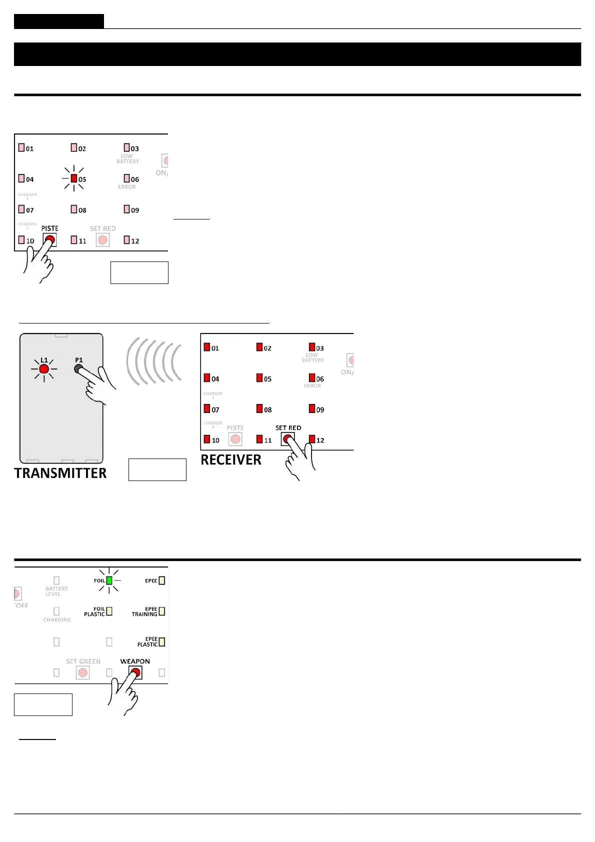 selected weapon via the RECEIVER: if all the LEDs on the RECEIVER light