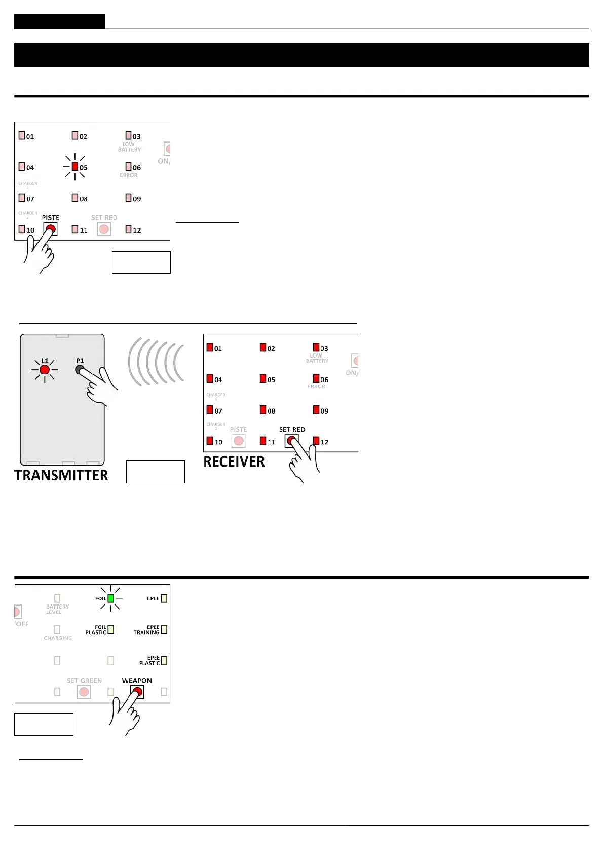 Werkseitig sind der RECEIVER und die TRANSMITTER auf die Fechtbahn