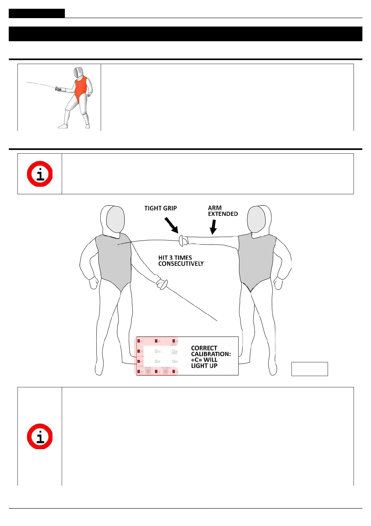 Effectuate the calibration by following the indications below for fencer position (see Fig.