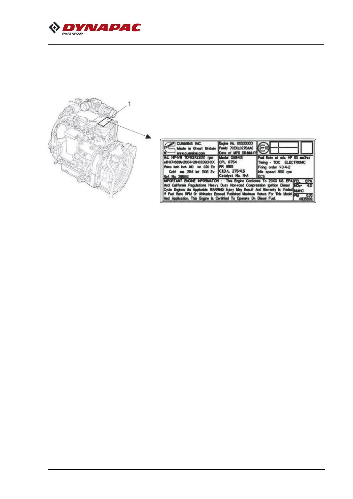 The plate specifies the type of engine, serial number and