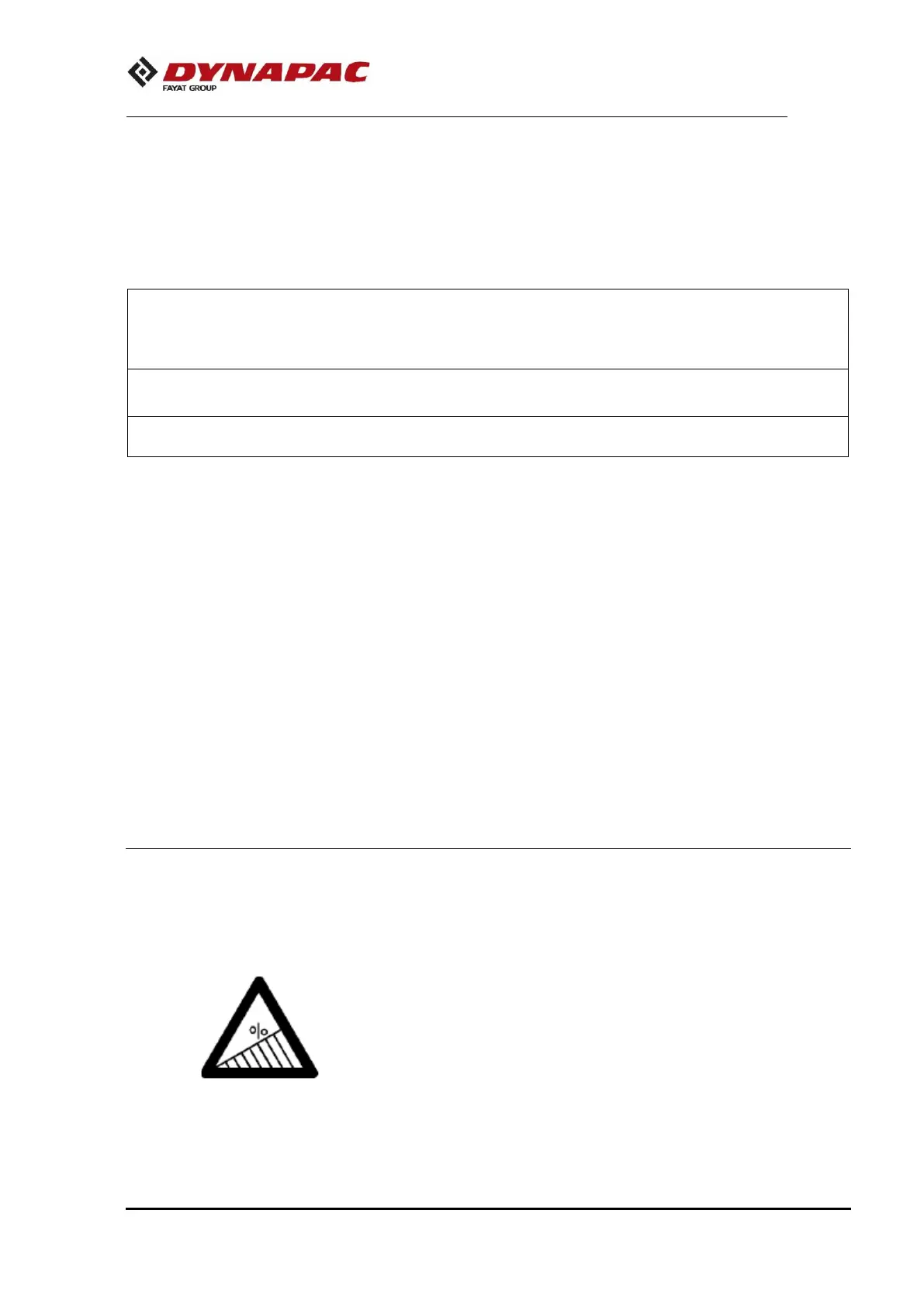 The recommended max slope angle is for a machine
