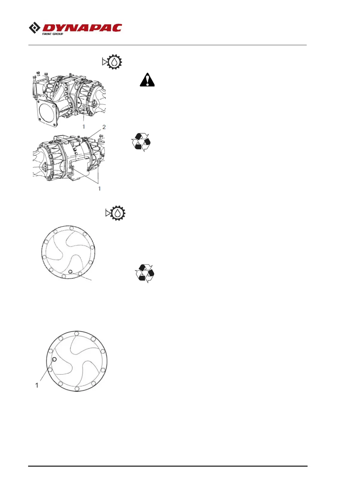(1) and (3) and the three drain plugs (2). The filler/level plugs
