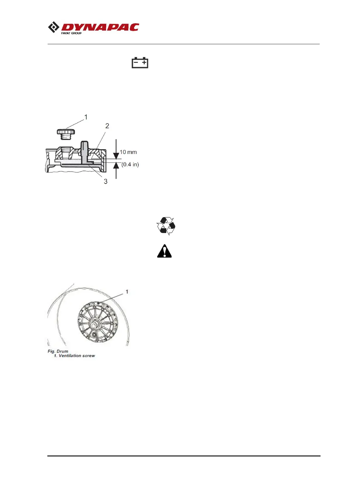 Take off the cap (1) and make sure that electrolyte level (2) is
