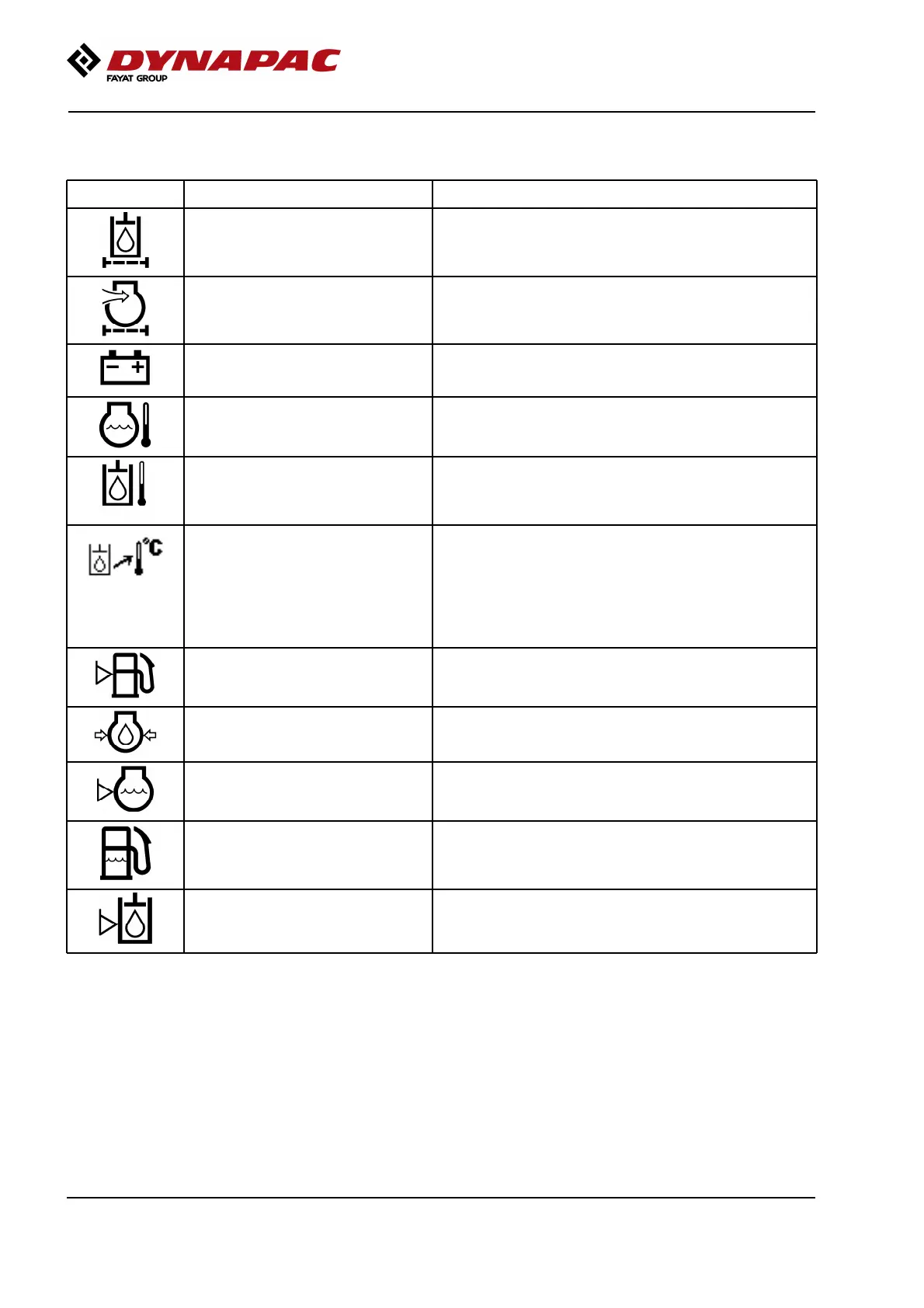 Warning symbol, hydraulic fluid filter If the symbol is shown when the diesel engine is running at