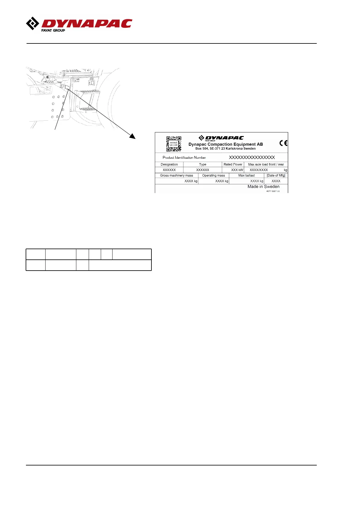 The machine type plate (1) is attached to the front left