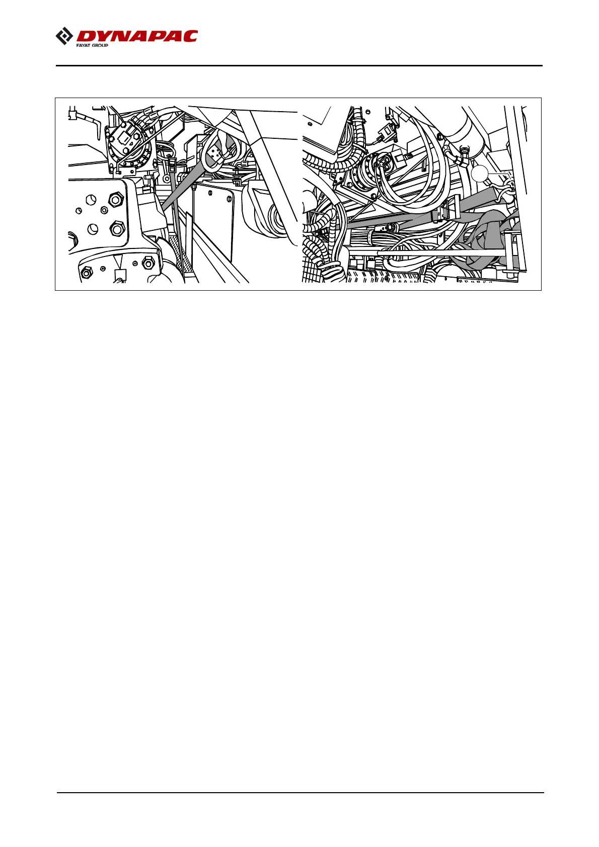 Diagonal lashing secures the paver finisher at the rear, at right angles to the direction