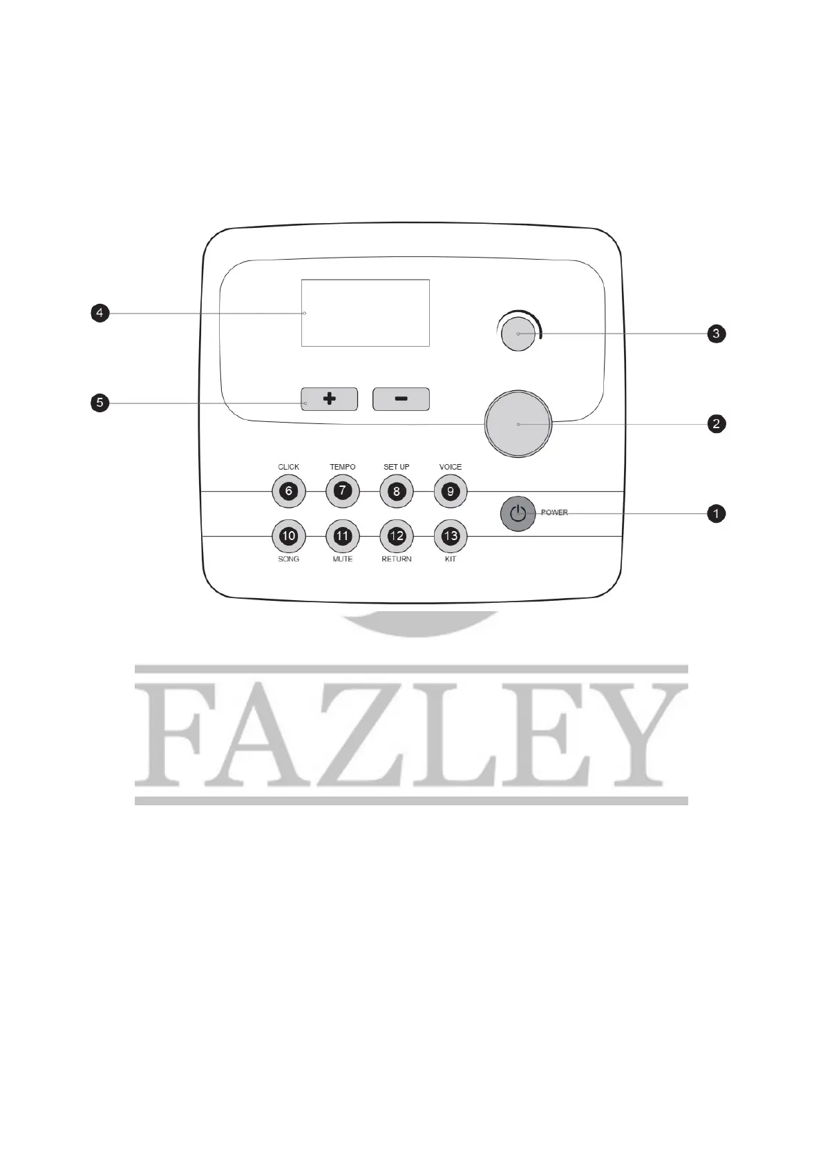 This button is pushed to switch the drum module on. To switch the drum module off, simply hold down the