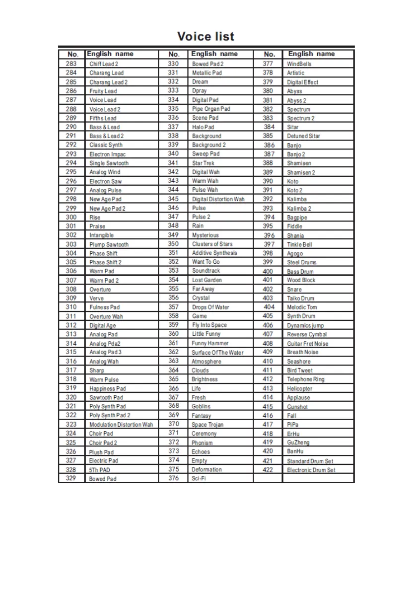 FAZLEY FKB-120 - Reference Lists; Voice List